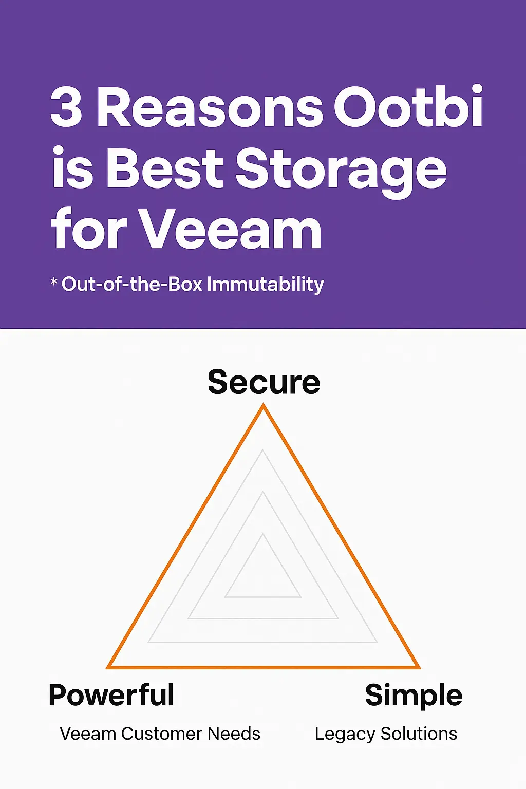 Ootbi by Object First is the most secure, simple, and powerful storage built for Veeam backups. With out-of-the-box immutability and Zero Trust principles, it protects data from ransomware without requiring complex configuration or security expertise.