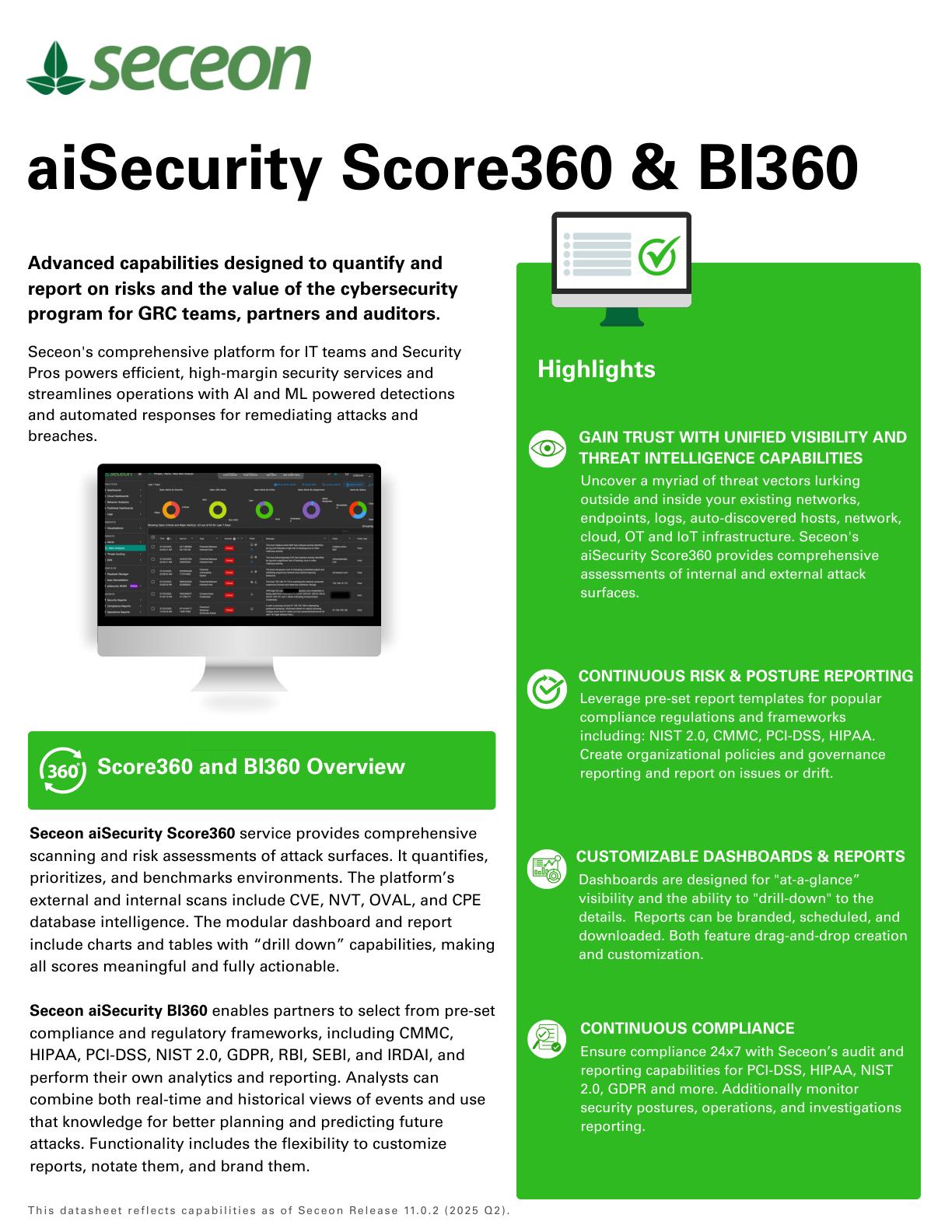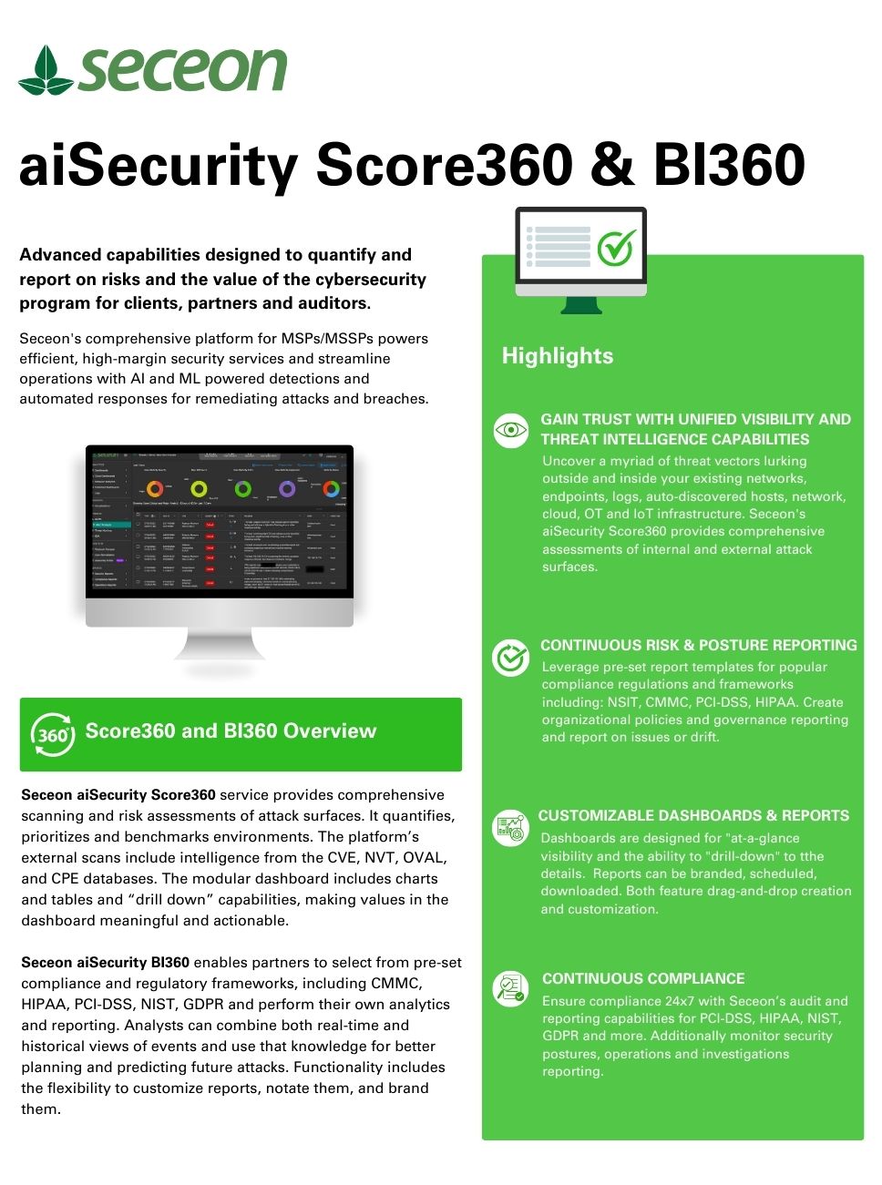 Seceon aiSecurity Score360 & BI360 Capabilities